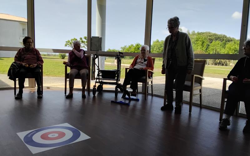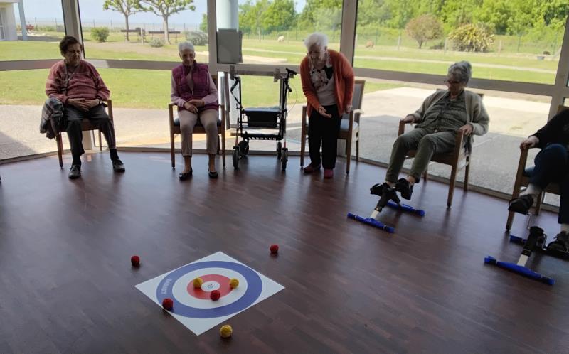 Les activités motrices proposées aux résidents sont aussi multiples que les besoins et que les professionnels associés. Ce 23 avril, certaines pédalent de concert 🚲 et d'autres comptent les points sur les cibles 🎯