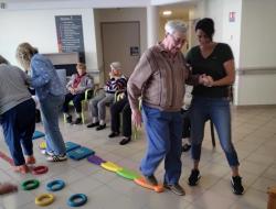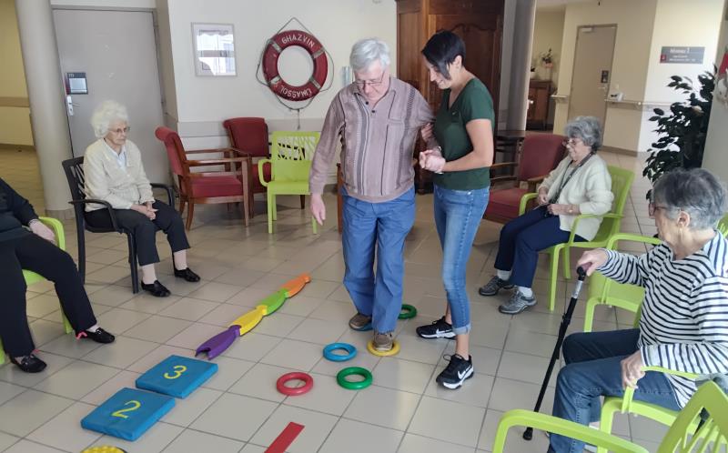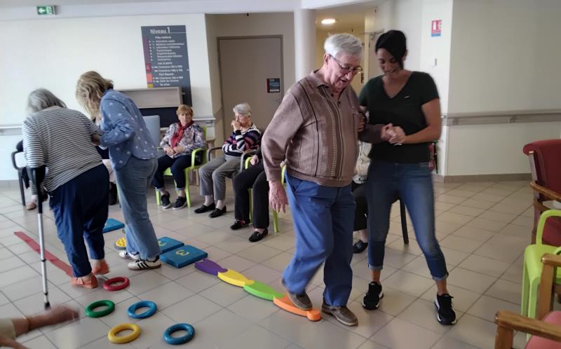 Résidence de la Presqu'Île > Actualités > Atelier gym Atelier gym Publiée le 21/04/2026 20 avril, les obstacles envahissent les salons ! L'atelier d'Activités Physiques Adaptées de notre partenaire SielBleu permet de travailler l'autonomie de chacun.