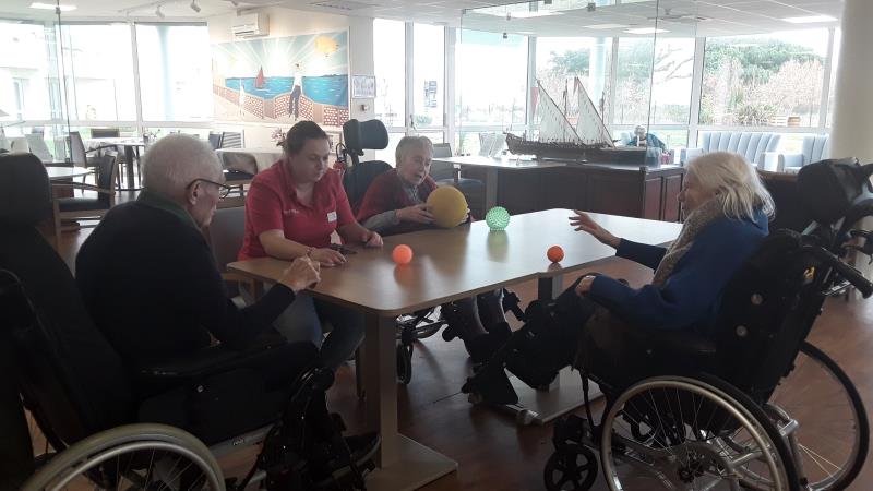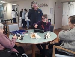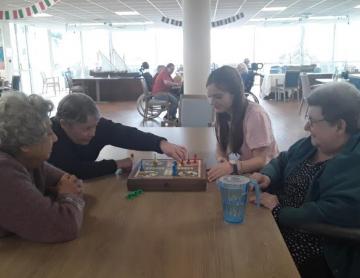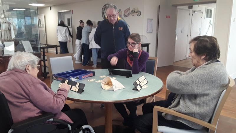 Les tables du restaurant principal de la résidence La Presqu'île sont devenus des tables de jeux le 17 janvier. Oriane et Jeanne proposent différents ateliers.