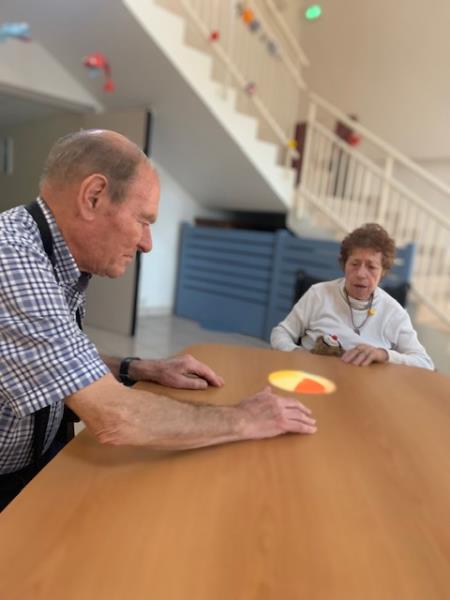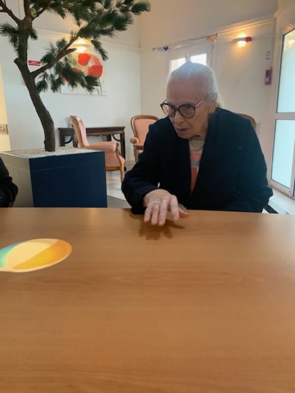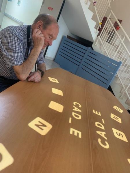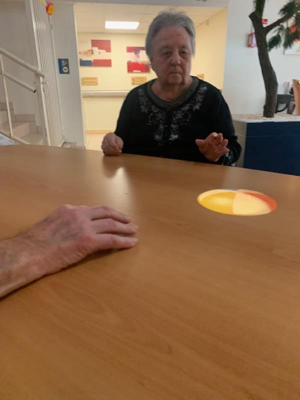 L'unité sécurisante de la résidence de FOURAS est équipée d'une TOVERTAFEL interactive. La session du 13 octobre avec Sophie, un des psychomotriciennes, est très appréciée.