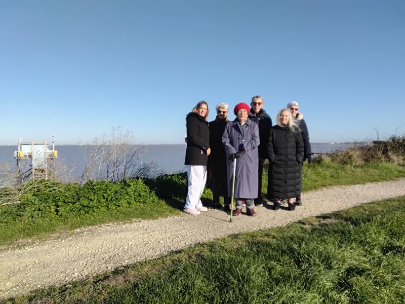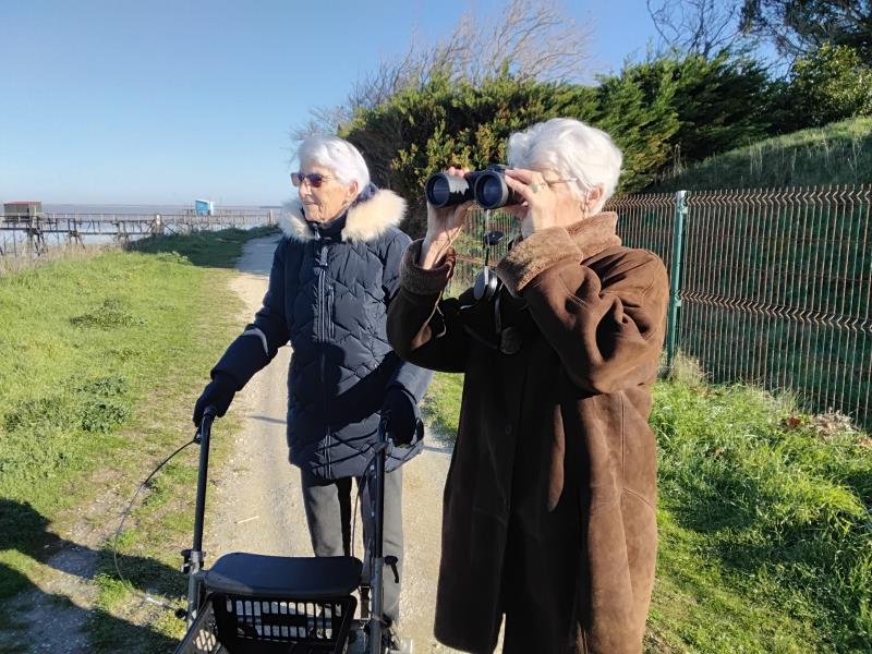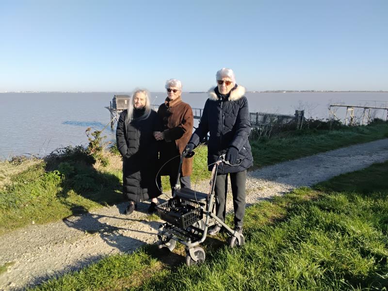 Le bord de mer est bien agréable pour les promeneurs ce 26 novembre. La mer est haute, le sentier serpente le long des carrelets, on cherche les oiseaux aux jumelles, le ciel est bleu et le soleil réchauffe.... le plaisir du jour est partagé avec Arnaud, notre kinésithérapeute, qui organise ces sorties dés que possible.
