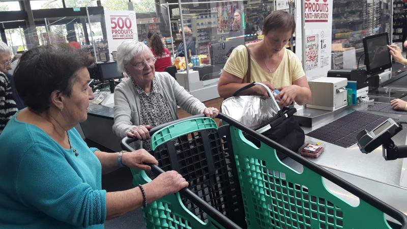 Direction les allées du supermarché pour les résidents du Pôle d'activités et de Soins Adaptés de Fouras. Deux raisons, la météo du 02 aout est trop triste pour se promener dehors et surtout il faut acheter les ingrédients du concours de pâtisserie de demain !