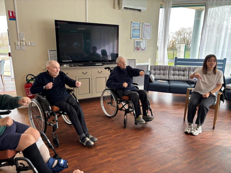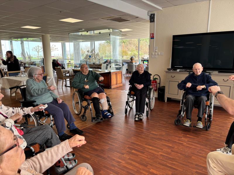 Moment pendant lequel certains résidents peuvent s'exercer sur un sport adapté aux capacités de chacun, permettant d'entretenir les articulations, la force musculaire, la mobilité fonctionnelle en fauteuil roulant et renforcer les liens sociaux.