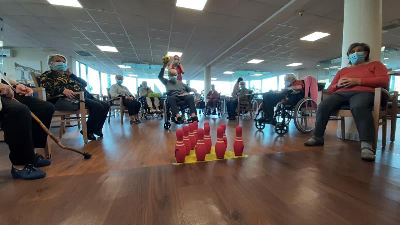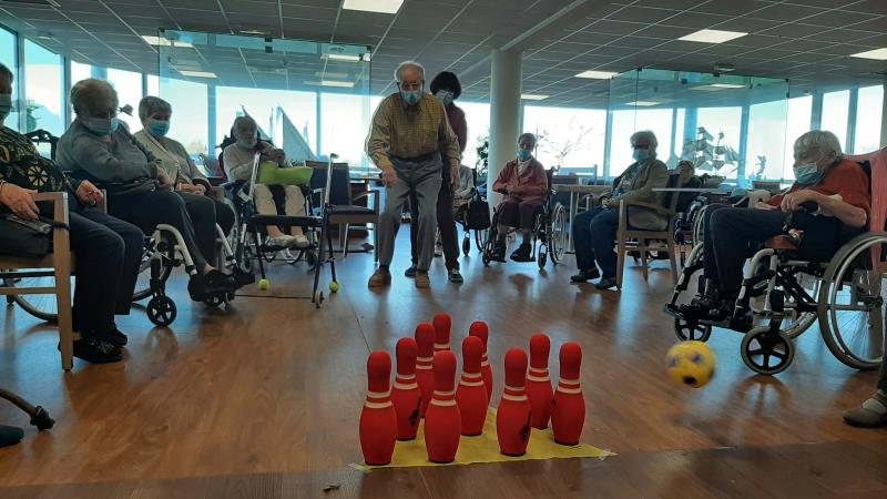 Pour ce 26 novembre, Catherine a transformé le restaurant principal en piste de bowling. L'activité physique adaptée est une des réponses au maintien de l'autonomie.