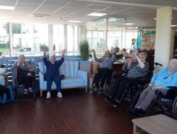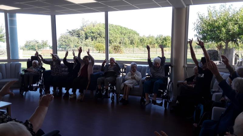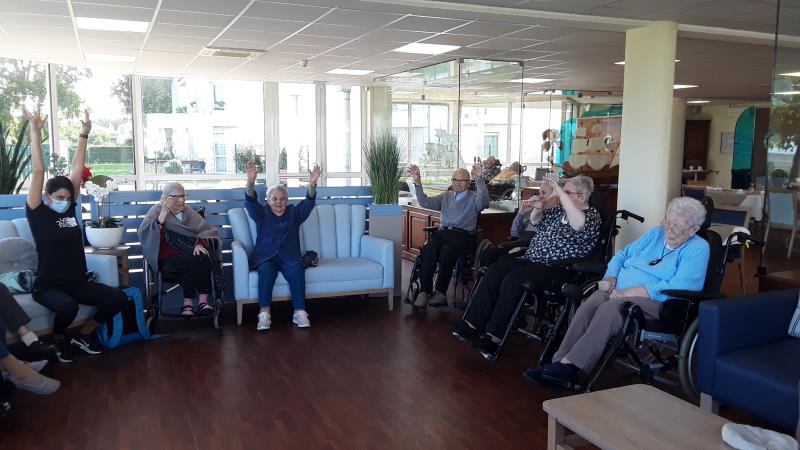 Chaque vendredi matin, le salon front de mer de l'établissement de Fouras accueille l'activité "percussions corporelles". Ce 07 octobre, encore beaucoup d'entrain pour les exercices proposés.