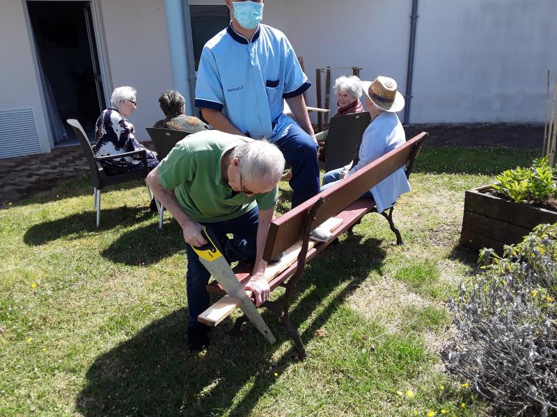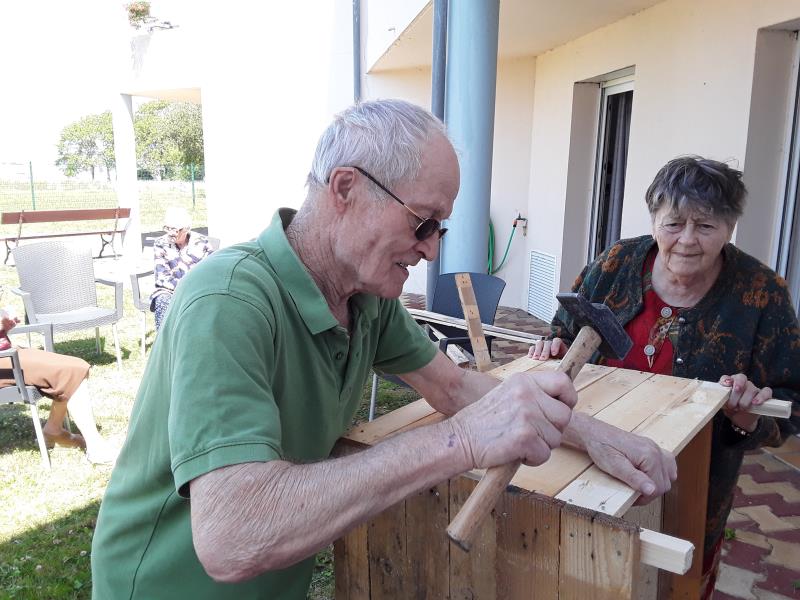 Résidence de la Presqu'Île > Actualités > bricolage bricolage Publiée le 22/07/2020 Les résidents de l'unité spécialisée Les Voiliers fabriquent leur jardinière. On scie, cloute et peint dans la bonne humeur pour ce travail en commun.