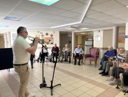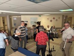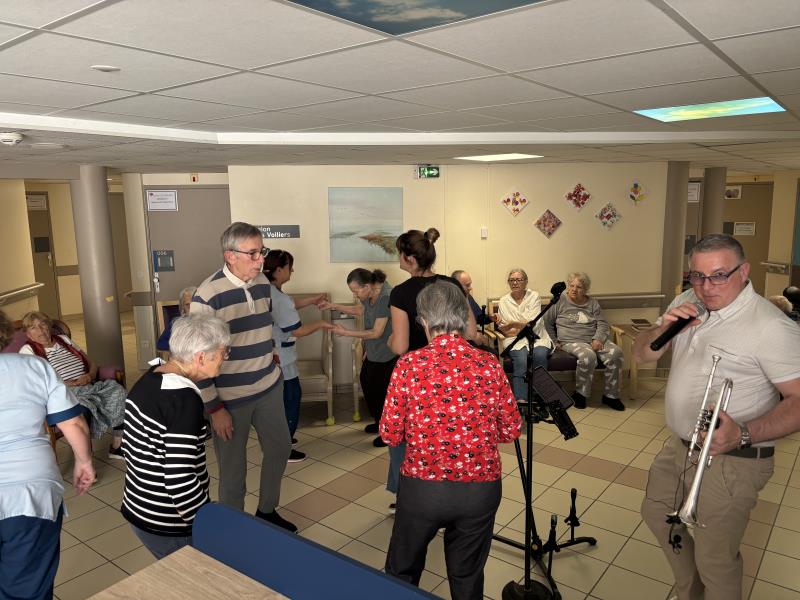 Résidence de la Presqu'Île > Actualités > C'est la fête aux voiliers C'est la fête aux voiliers Publiée le 29/04/2026 Ce mardi 28 avril, les résidents des voiliers sont ravis de retrouver Crystal trompette pour danser et chanter.