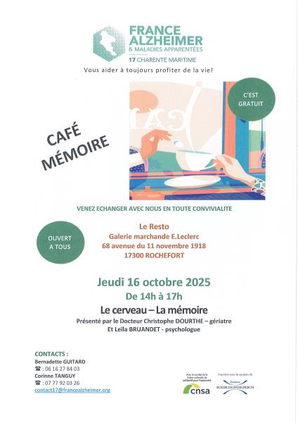Le rendez-vous, gratuit et ouvert à tous, est prévu le 16 octobre, de 14h à 17h dans "Le resto" dans la galerie marchande E. Leclerc de Rochefort.