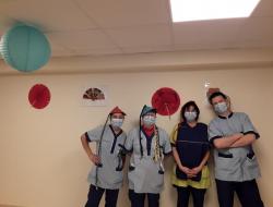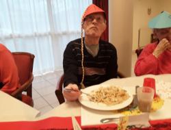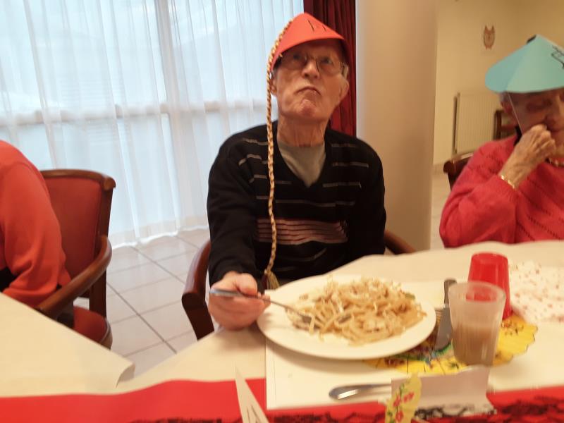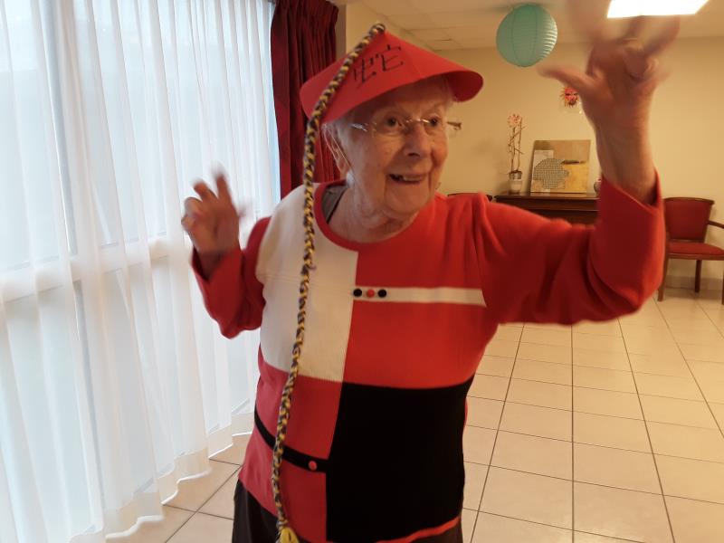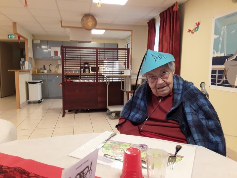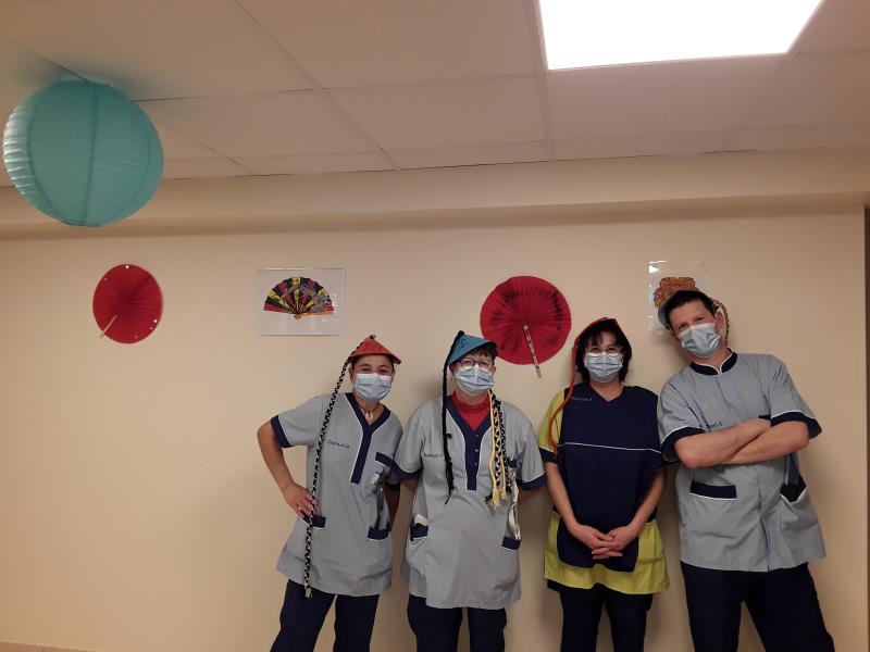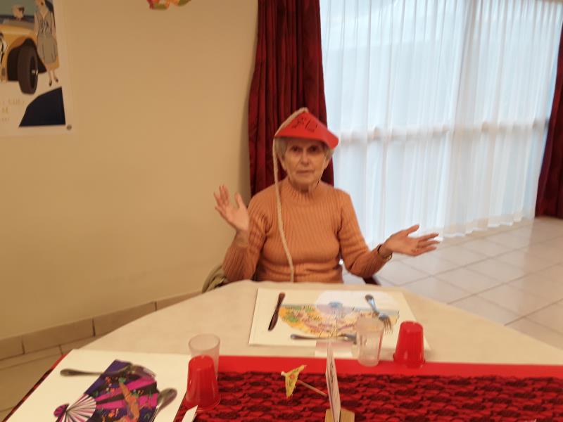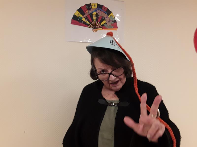 La bonne humeur est communicative dans l'unité spécialisée Les Voiliers pour ce 12 février. Les chapeaux chinois préparés par les résidents ont trouvé de jolies têtes à décorer.