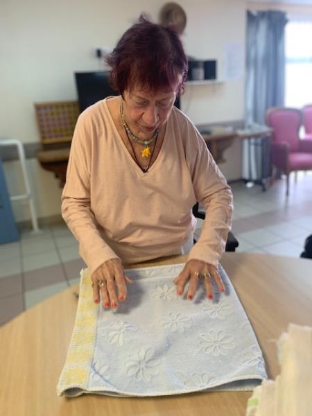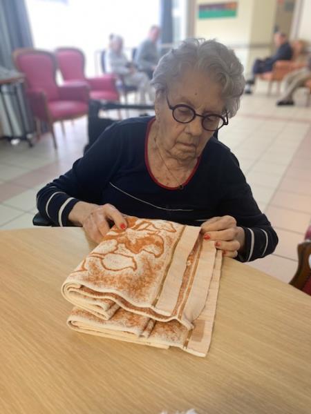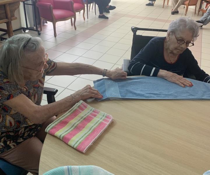 Un des rendez-vous immanquables de l'unité spécialisée est le pliage du linge. Pour le 16 juin, la mémoire des gestes, la concentration et la dextérité sont mises à contribution.