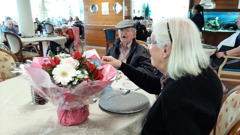 Quand un mari offre un bouquet de fleurs pour l'anniversaire de son épouse, en EHPAD ou à la maison, cela fait autant plaisir !