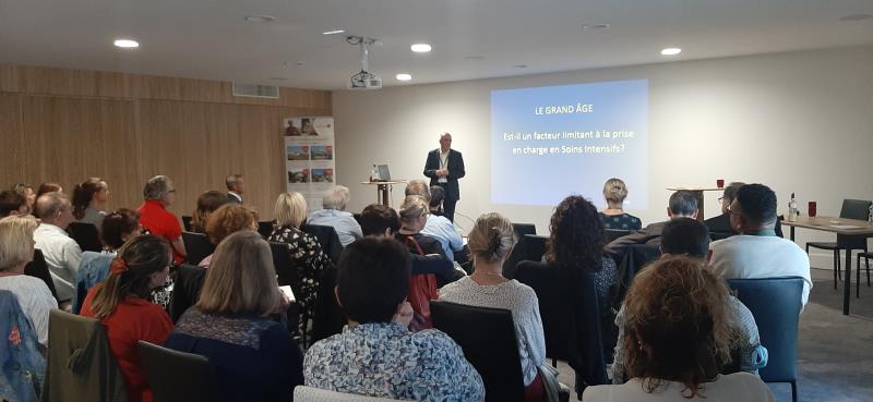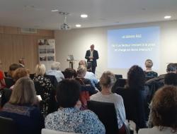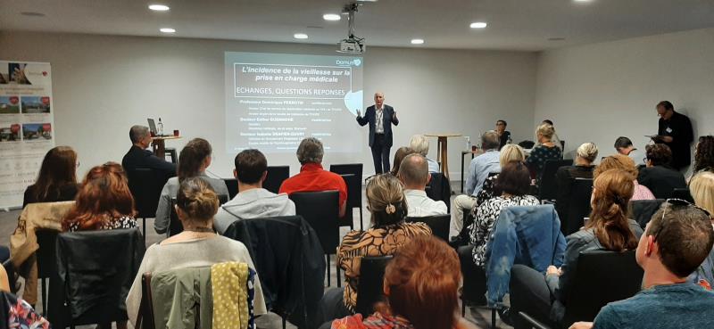 La soirée du 7 octobre est studieuse pour les équipes de la résidence. L'établissement a organisé un rendez-vous Gérontologie à destination des professionnels médicaux et paramédicaux de l'agglomération. "L'incidence de la vieillesse dans la prise en charge médicale" a été débattu avec l'apport du Professeur PERROTIN, ancien Chef de service de réanimation et doyen de la faculté de médecine de TOURS, Dr GUENNICHE Directrice médicale du groupe DomusVi et Dr DRAPIER- OUVRY gériatre de l'équipe mobile du GH Littoral Atlantique.