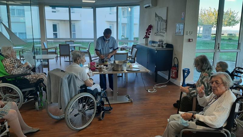 Résidence de la Presqu'Île > Actualités > Crêpe-party Crêpe-party Publiée le 04/11/2020 Les mercredis sont gourmands à l'EHPAD de Fouras. L'odeur sucrée des crêpes envahit la salle principale pour le plus grands bonheur de tous.