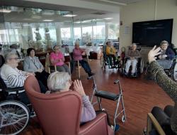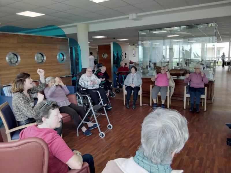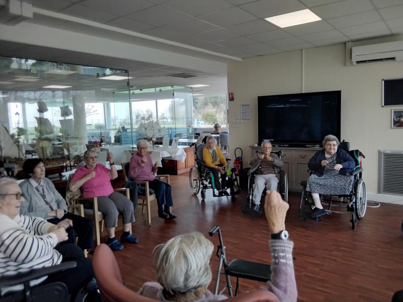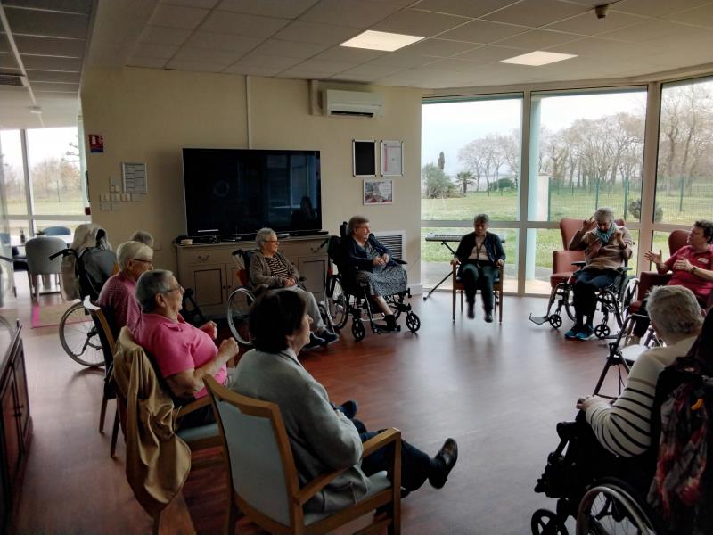 Résidence de la Presqu'Île > Actualités > danse assise danse assise Publiée le 15/03/2024 13 mars, l’activité Danse Sur Chaise de Fanny fait le plein dans le salon télévision 👩🦽💃🕺🎶🪑