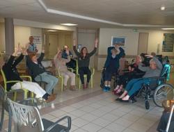 Résidence de la Presqu'Île > Actualités > Danse sur chaise Danse sur chaise Publiée le 28/12/2023 Ce mercredi 27 décembre, les résidents de la Presqu'île se réveillent en musique ⏰🎶🕺 💺♿!