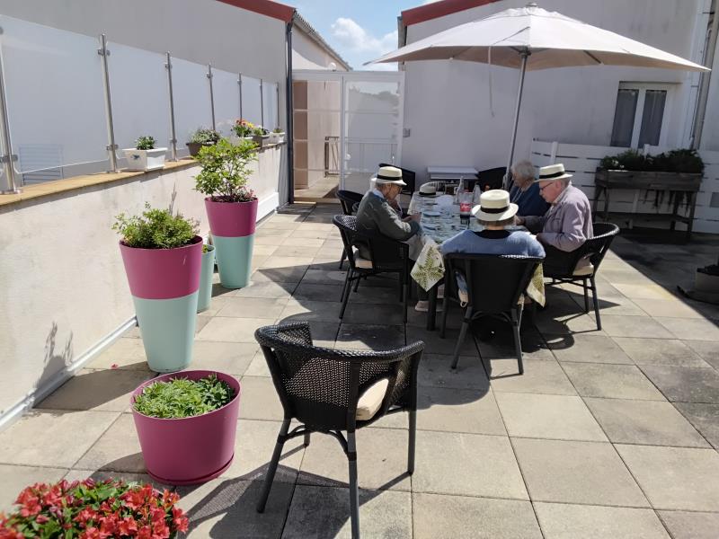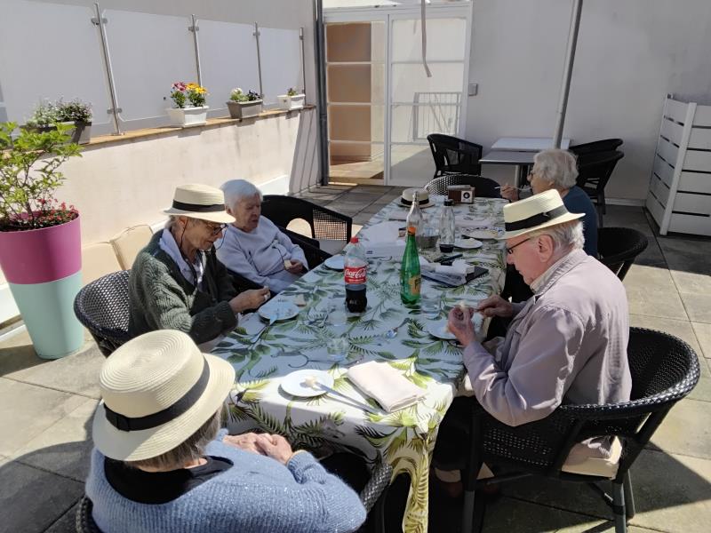 Résidence de la Presqu'Île > Actualités > Dejeuner en terrasse Dejeuner en terrasse Publiée le 28/04/2025 La saison des déjeuners en terrasse est lancée le 28 avril pour le Pôle d’Activités et de Soins Adaptés. Chapeaux 👒 et parasol ⛱️ sont de sortie.