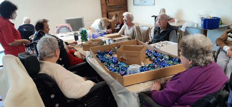 Les sapins sont prévus pour le 06 décembre 🌲. Dans l'attente, c'est effervescence ce lundi pour trier les boules de déco, en fonction des tailles et des couleurs 🔵🔴🔘