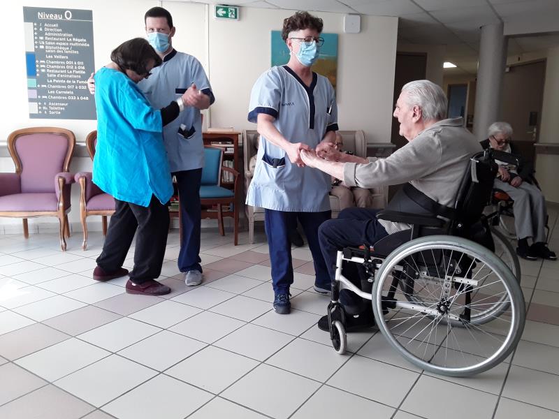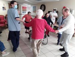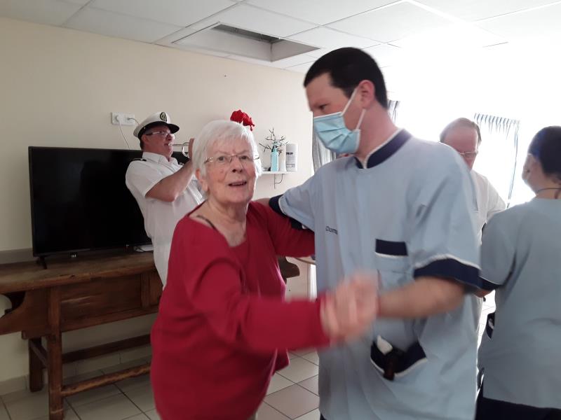 Pour ce 26 février, Crystal Trompette fait danser les résidents de l'unité spécialisée Les Voiliers de Fouras. La matinée se clôt par un concert et la joie de partager ces moments.