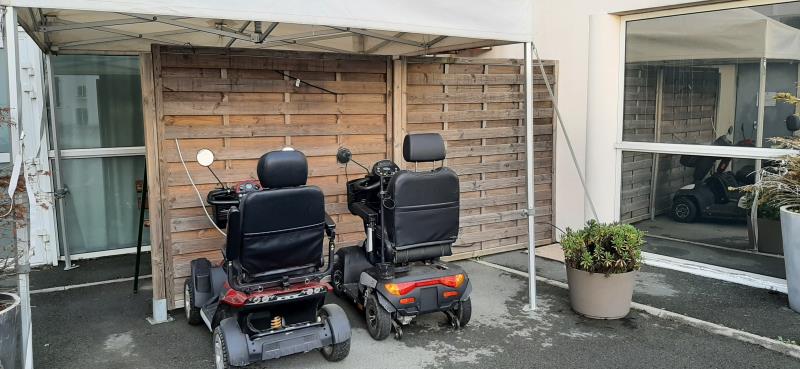 Le parking des scooters électriques se remplit. En favorisant l'autonomie des sorties extérieures en proposant les branchements électriques et l’abri des intempéries, la résidence de FOURAS inscrit son projet d’établissement dans le Bien-être et le respect de son public accueilli.