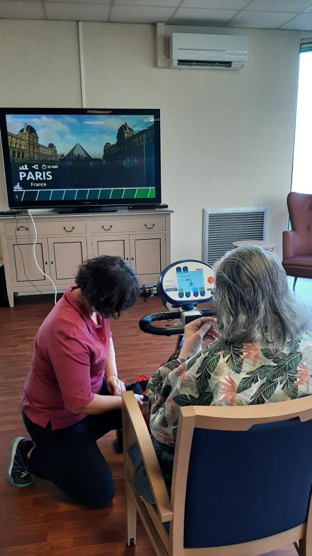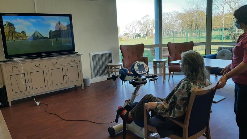 Pas de confinement cet après-midi à l'EHPAD de Fouras. Ce 05 novembre, le motomed, vélo thérapeutique connecté, permet les promenades dans Paris et ses monuments.