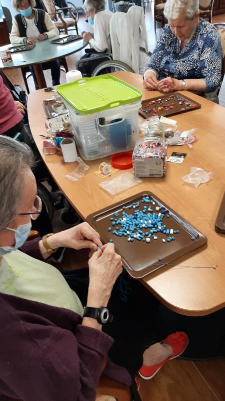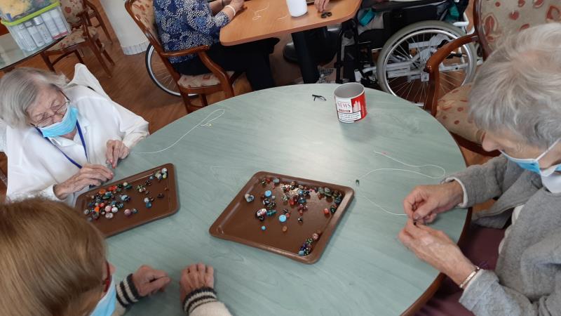 Pour ce 20 octobre, la dextérité fine est mise à l'honneur à Fouras. Catherine, l'animatrice de LA PRESQU'ILE, propose aux résidents de fabriquer leur propre collier de perles.