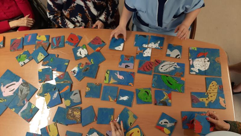 Pour ce 17 mars, le tableau dessiné et peint par les résidents de l'Unité Spécialisée de l'EHPAD de Fouras est devenu un maxi-puzzle.