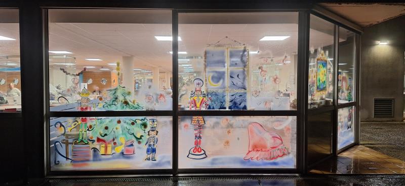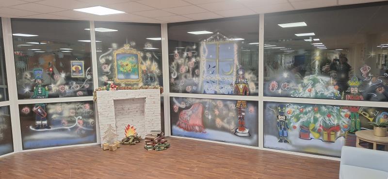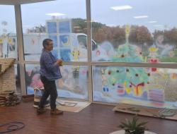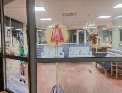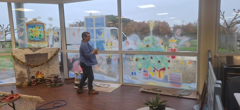 Résidence de la Presqu'Île > Actualités > Fresques décoratives Fresques décoratives Publiée le 05/12/2025 Les dernières fresques ont pris forme sur les grandes paroies vitrées du salon front de mer. A vous de trouver les différentes inspirations ....🖼