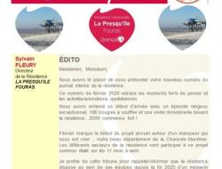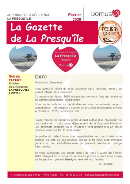 Votre nouveau mensuel est déjà disponible. Retrouvez sur le site, via l'application ou sur le comptoir de la résidence le numéro février du journal interne de LA PRESQU'ILE