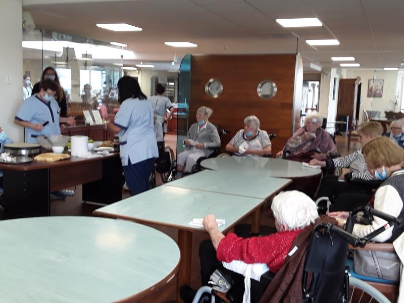 Ce 7 octobre, goûter crêpes dans le restaurant principal. Les équipes de la résidence La Presqu'île de Fouras préparent devant les résidents gourmands les crêpes maisons