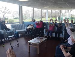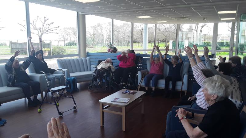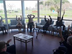 Résidence de la Presqu'Île > Actualités > gym douce gym douce Publiée le 19/03/2024 Le salon front de mer est transformé en petit gymnase pour les athlètes du lundi matin 18 mars.