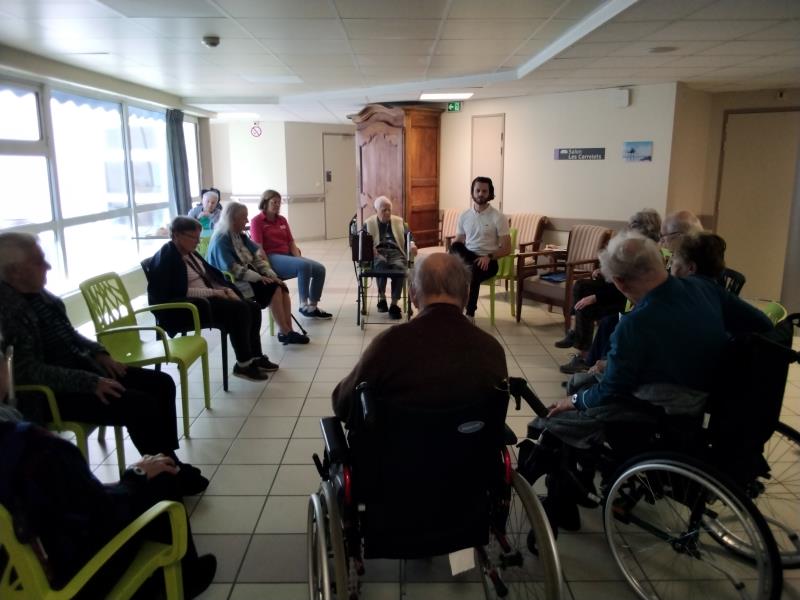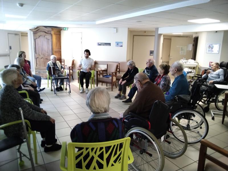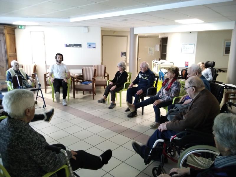 Résidence de la Presqu'Île > Actualités > gym douce gym douce Publiée le 26/04/2025 Camille, notre enseignant APA, mène la séance de l’atelier Équilibre du 25 avril.