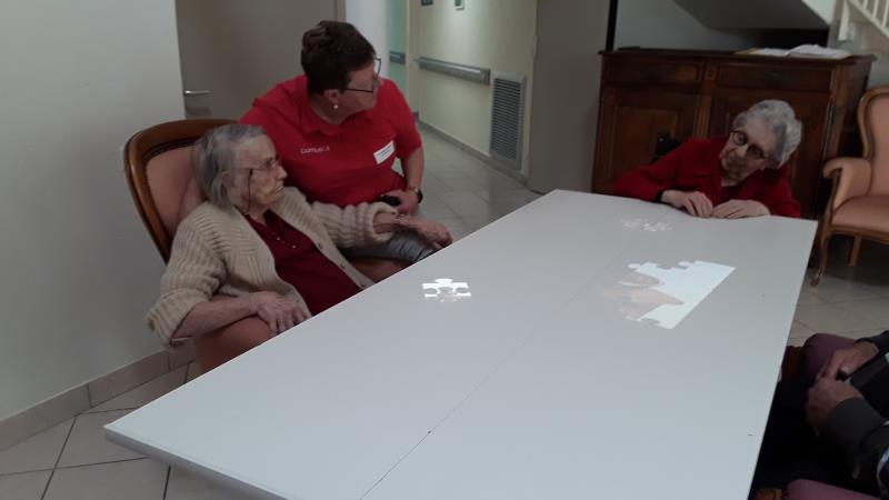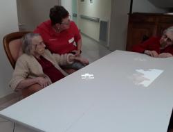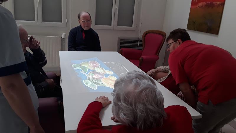 La résidence médicalisée La Presqu'île de Fouras est équipée d'une table Tovertafel. Outil de soin adapté aux troubles cognitifs, c'est aussi une des réponses non-médicamenteuses de l'établissement. Pour ce 24 avril, Christine accompagne plusieurs résidentes.
