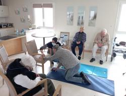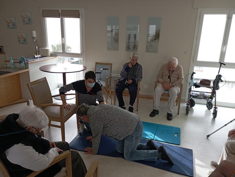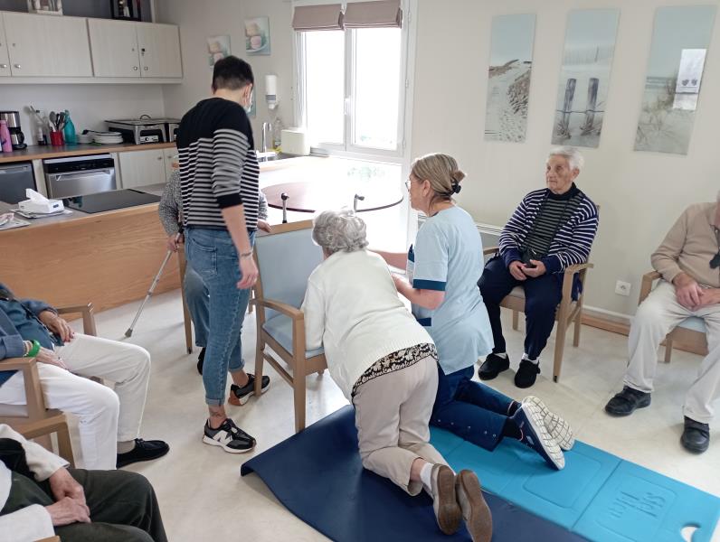 Résidence de la Presqu'Île > Actualités > J'apprends à me relever J'apprends à me relever Publiée le 30/01/2026 Atelier pratique au Pôle d'Activités en Soins Adaptés de FOURAS ce 29 janvier, nous apprenons à nous relever en cas de chute.