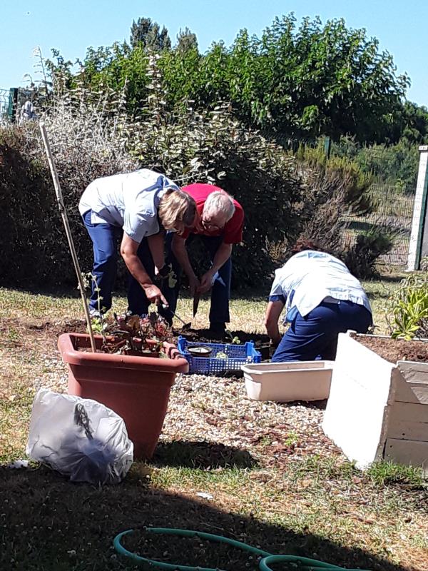 Résidence de la Presqu'Île > Actualités > jardinage jardinage Publiée le 26/08/2020 Certains jardinent et d'autres regardent ! les plants de salade sont bien surveillés à la résidence La Presqu'île de Fouras.