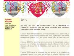 Le numéro de JANVIER 2023 de votre Gazette mensuelle se finalise. Disponible à la fin du mois de décembre sur le site internet, via l'application FamilyVi pour les familles et à votre disposition à l'accueil de la résidence, le prochain numéro retracera un mois de décembre 2022 bien rempli à la Résidence de FOURAS.