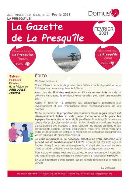 Le numéro de LA GAZETTE DE LA PRESQU'ILE de Février 2021 est disponible.