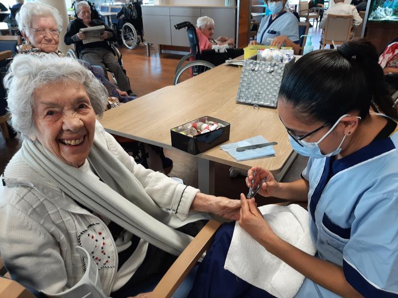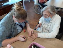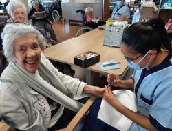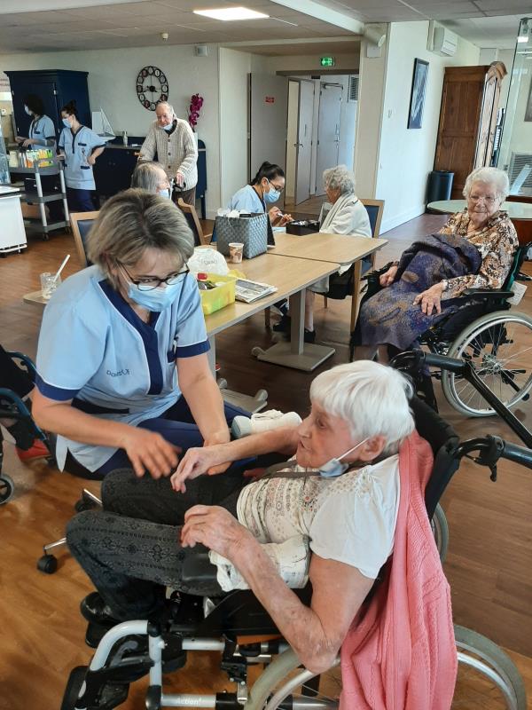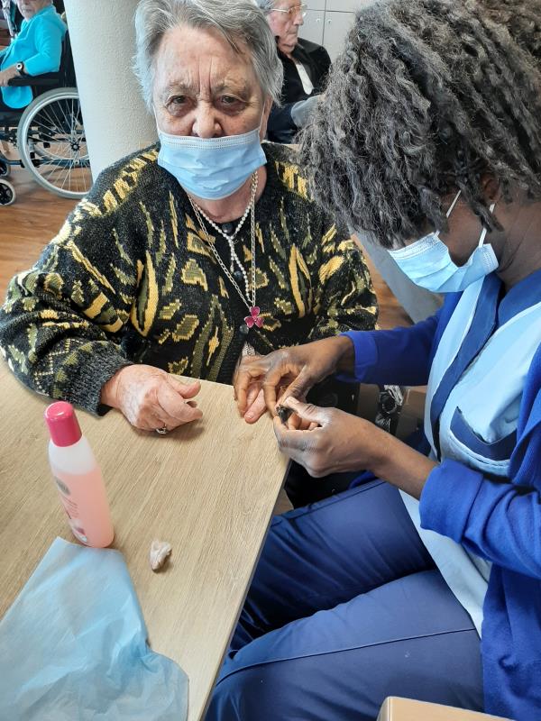 Résidence de la Presqu'Île > Actualités > le confort le confort Publiée le 20/01/2021 Après la séance de vaccination, séance de bien-être pour ces dames ! La salle principale de la résidence de Fouras se transforme en salon esthétique.