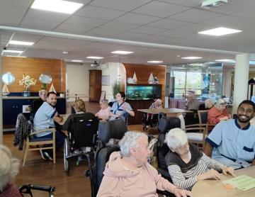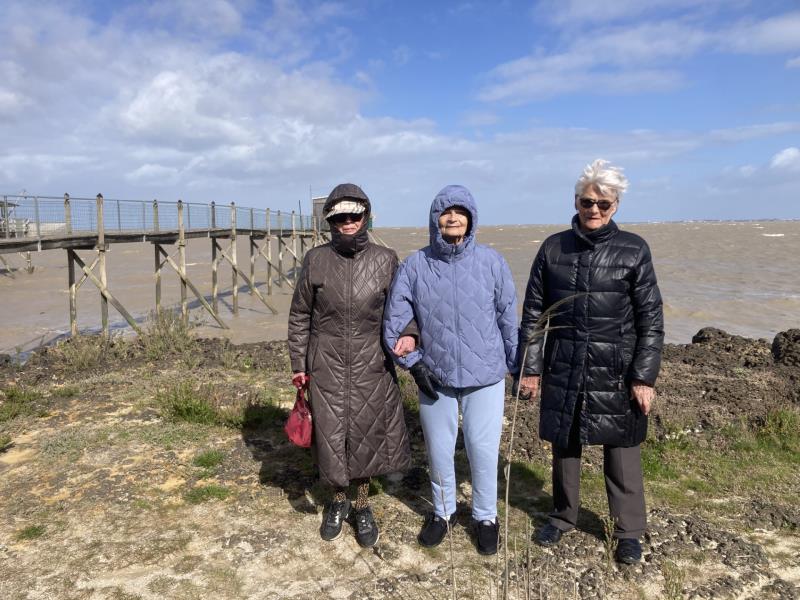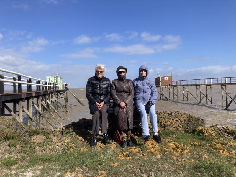 Disparition du printemps ce 25 mars ! Le soleil est toujours là mais les températures ont chité et le vent s'est invité. Bien protégées, quelques résidents téméraires bravent les élèments avce Arnaud, notre kiné, pour une sortie le long des carrelets.