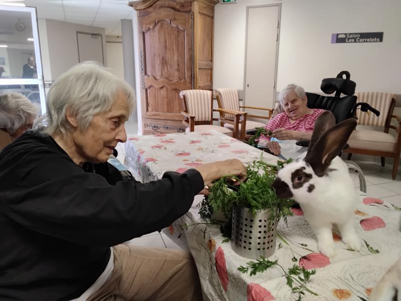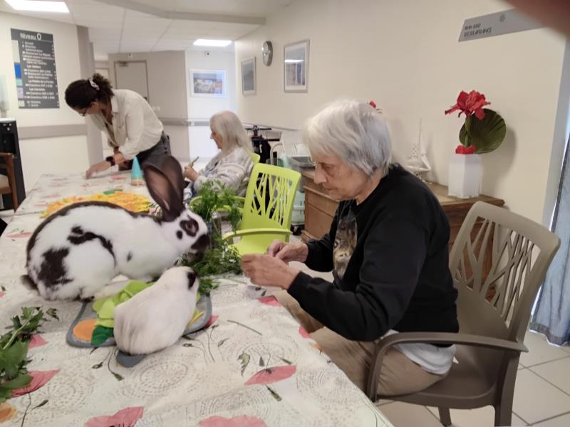 Résidence de la Presqu'Île > Actualités > Les p’tites bêtes... Les p’tites bêtes... Publiée le 16/09/2025 Ce 15 septembre, les p’tites bêtes de la zootherapie sont en séance dans la résidence La Presqu'île.