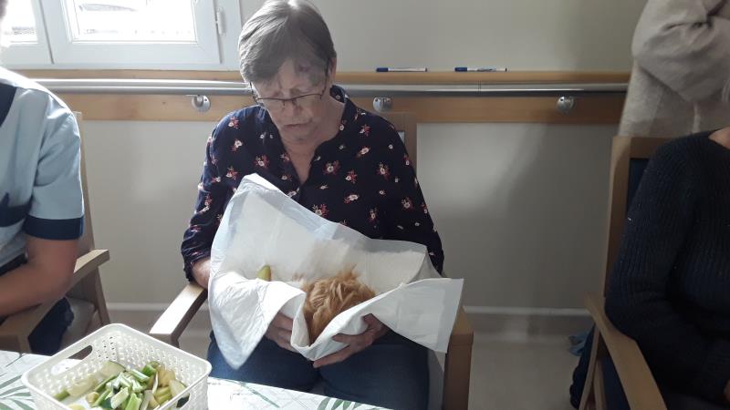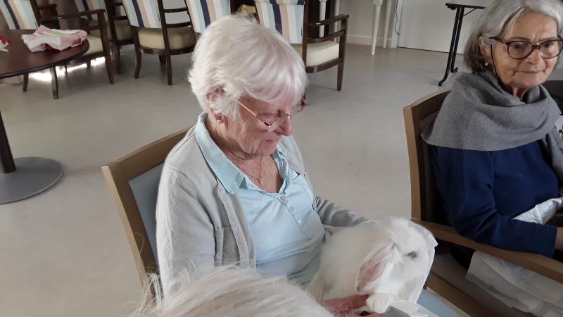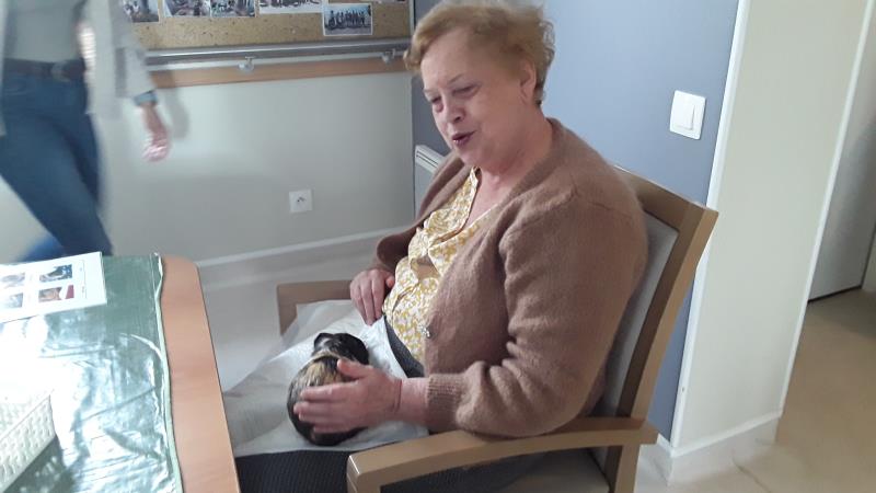 Les séances hébdomadaires de zoo-thérapie de notre partenaire Les Truffes Empathes sont toujours un joli moment. Le rendez-vous du 18 octobre est au sein du Pôle d'activités et de Soins Adaptés.