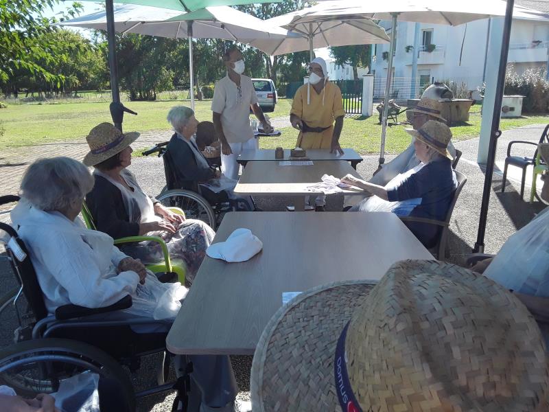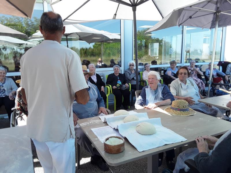 Vendredi 4 septembre, journée Tamelier à la résidence La Presqu'île de Fouras. On fabrique le pain et on profite du spectacle. Le grand jardin du Front de mer permet de proposer, en sécurité, les activités aux résidents.