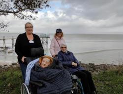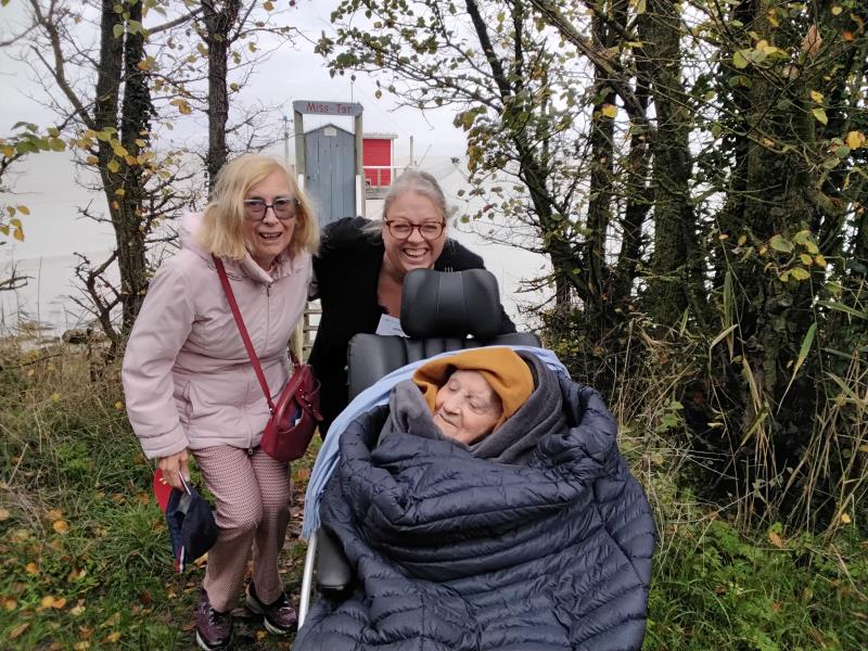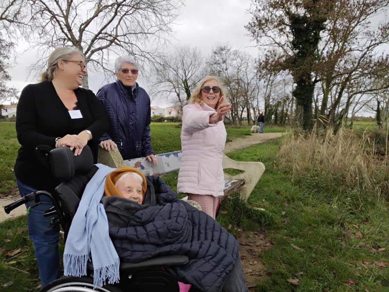 L'air marin est bien agréable encore ce lundi 10 novembre. Manteau, plaid et couverture... direction le front de mer pour sur sortie avec Sophie, animatrice et Arnaud, kinésithérapeute. Plus qu'une simple promenade, c'est aussi le temps d'évaluer les besoins de chacuns.