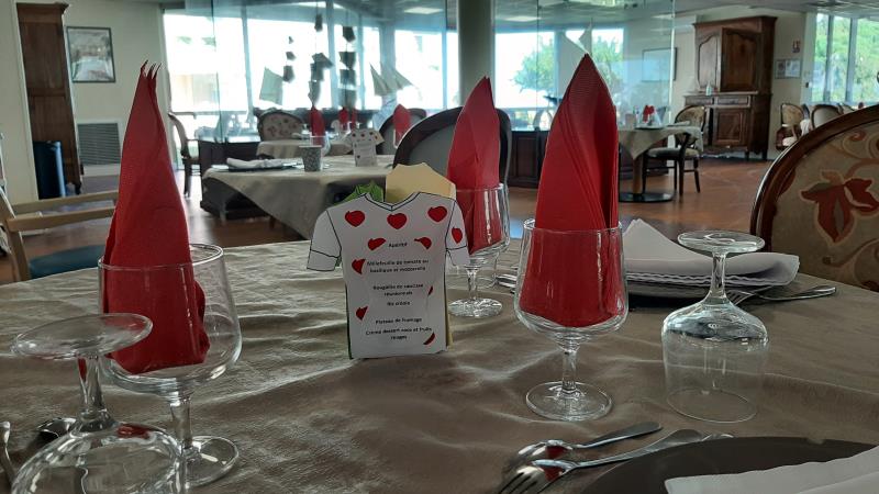 Après le menu vert, l'équipe de Cuisine propose son menu Blanc à pois rouge pour le suivi du Tour de France. Bravo aux équipes de l'EHPAD de Fouras pour proposer ces RDV à thèmes et rendez-vous mardi prochain pour le menu Jaune