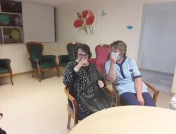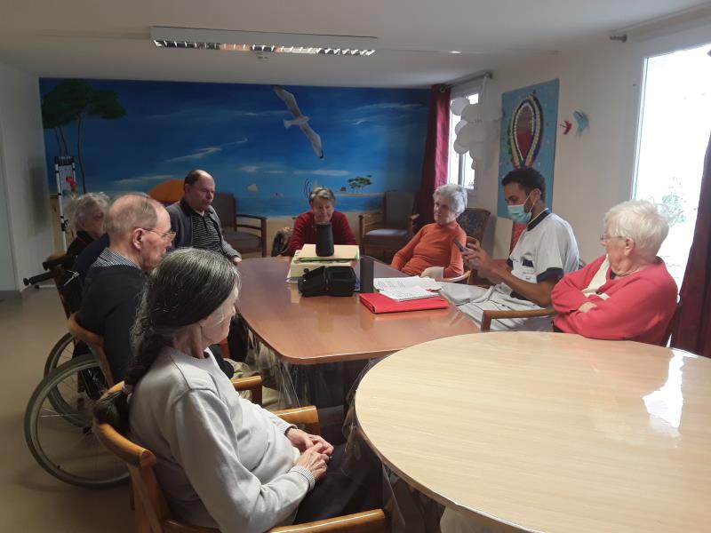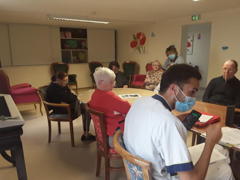 Theo, notre ergotherapeute apporte ce 19 octobre sa contribution hebdomadaire à la résidence La Presqu'île de Fouras. L'atelier musicotherapie fait le plus grand bien aux résidents et met des sourires sur les visages des participants.
