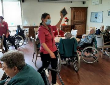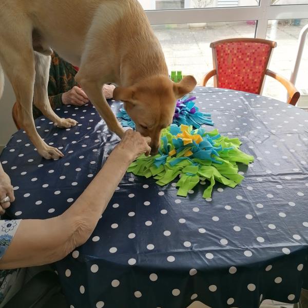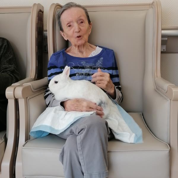 Visites des amis de la zoothérapie à l'EHAPD ce 26 mars. Les résidents de l'Unité Spécialisée retrouvent leurs compagnons habituels avec toujours autant de plaisir.