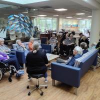 Publiée le 22/10/2025Les résidents partagent un moment d’échange et de convivialité tous réunis au petit salon, un endroit où ils aiment se retrouver avant le repas du soir. Lire la suite