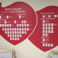 Publiée le 18/03/2026Il fallait bien reservé tout un mur pour lister l'ensemble de l'équipe de la résidence. Vous ne pouvez pas raté les 2 Coeurs Organigramme dans l'espace d'accueil. Vous y retrouverez vos interlocuteurs par fonctions et spécialités. Lire la suite