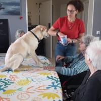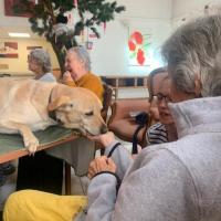 Publiée le 05/09/2024Mardi, tout est permis ! Le 03 septembre, la séance de zoo-thérapie du PASA de la Résidence accepte que les invités mettent les pieds sur la table 🐶 ! Lire la suite