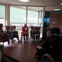Publiée le 09/04/2024Atelier Gazette ce mardi 09 avril. Fanny partage la lecture avec les résidents dans le salon télévision. Lire la suite