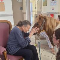 Publiée le 17/09/2025Notre visiteur du jour 🐴 "Cannabis" n'est pas bien grand mais il est le centre d'attention de tous ... En parallèle des ateliers d'équithérapie qui se déroulent dans le centre équestre partenaire, nous avons convenu que, régulièrement, nous échangions les trajets. Pour ce 17 septe [...] Lire la suite